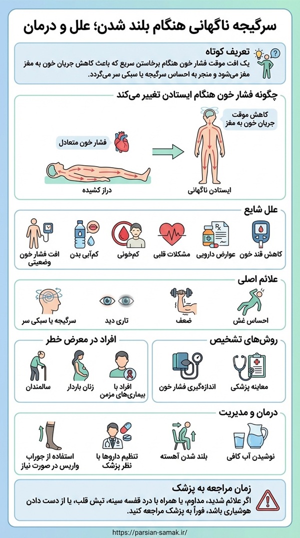 هنگام تغییر وضعیت از خوابیده به ایستاده، جاذبه زمین باعث جمع شدن خون در پاها میشود. در شرایط طبیعی، بدن با افزایش ضربان قلب و انقباض عروق خونی، این تغییر را جبران میکند. وقتی این مکانیسم جبرانی بهدرستی عمل نکند، افت موقت فشار خون و کاهش خونرسانی به مغز رخ میدهد.